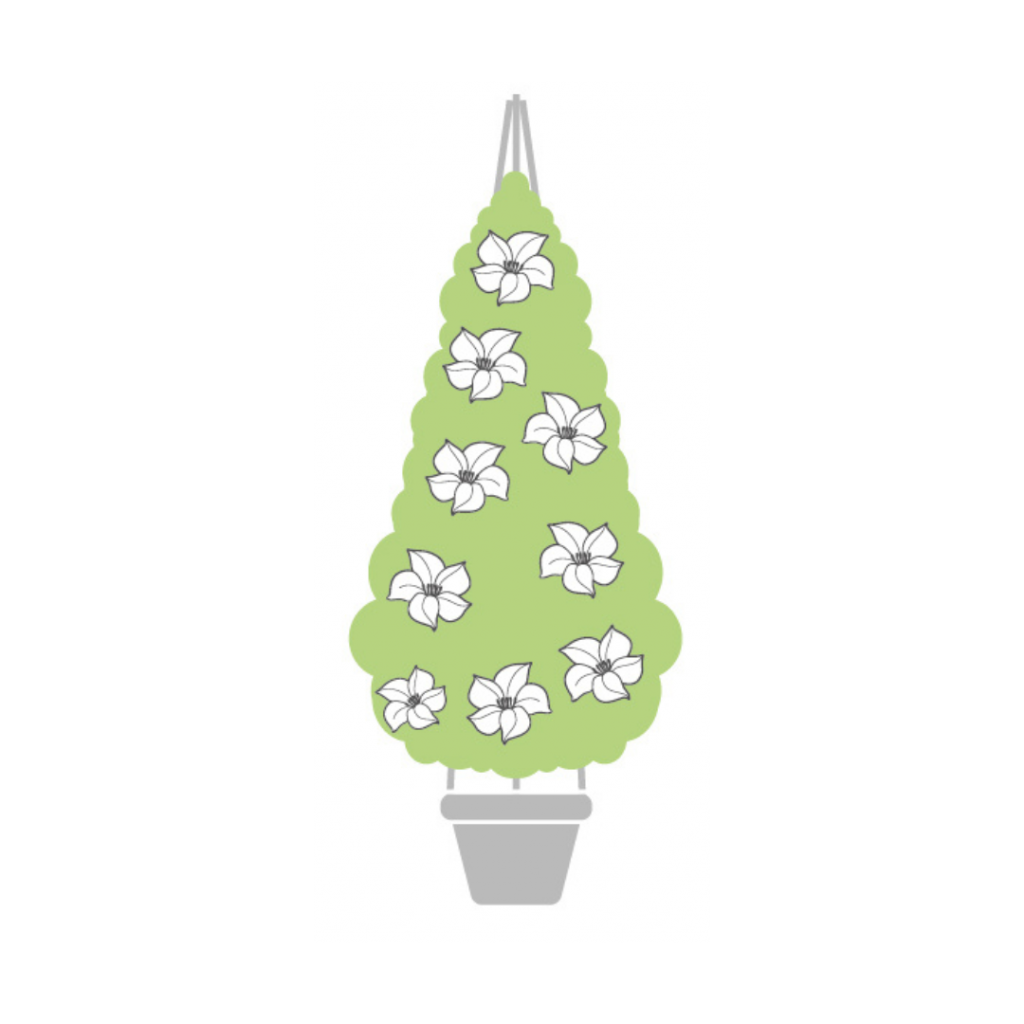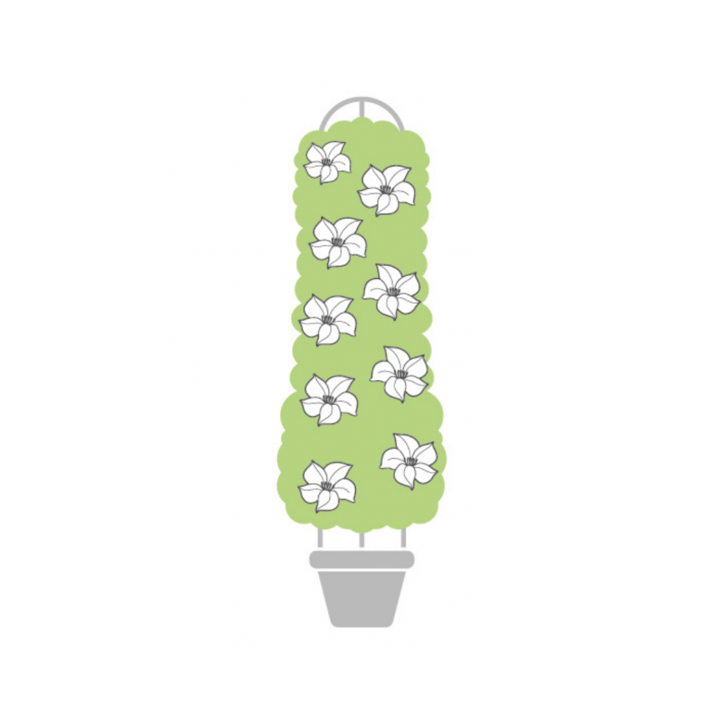 Trepadora con estructura firme que se mantiene vertical sin afilarse en la parte superior. Se sujeta con 4 cañas o arcos en forma de herradura, que pueden ser simples, dobles o triples (según el tamaño que tenga al llegar a tus manos).
