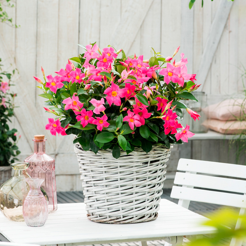 Si quieres una planta que lo haga todo fácil (y encima florezca sin parar), la Dipladenia compacta es tu mejor opción.