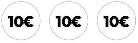 - Boleto premiado: 3 símbolos «10 €» en línea